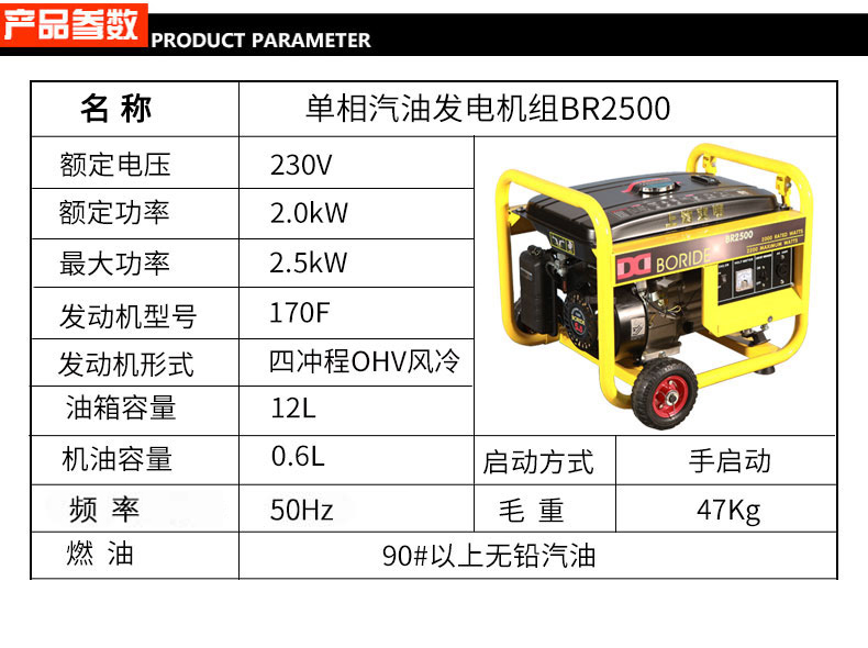 單相2kW小型汽油發(fā)電機(jī)組BR2500