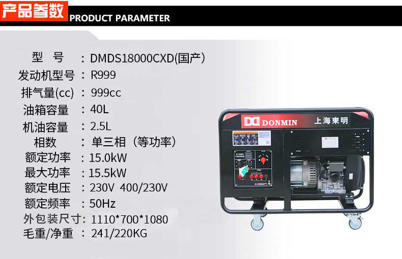 * 表示必填采購:東明單三相15kw國產動力汽油發電機組 DMDS18000CXD(國產)