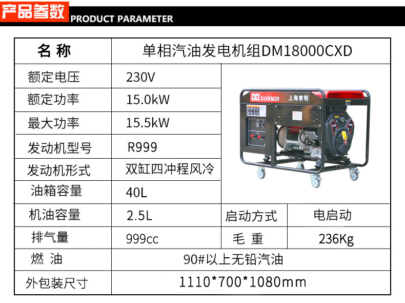 * 表示必填采購:單相15kw汽油發電機 DM18000CXD