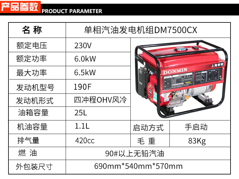 * 表示必填采購:單相6kW汽油發電機 DM7500CX手動