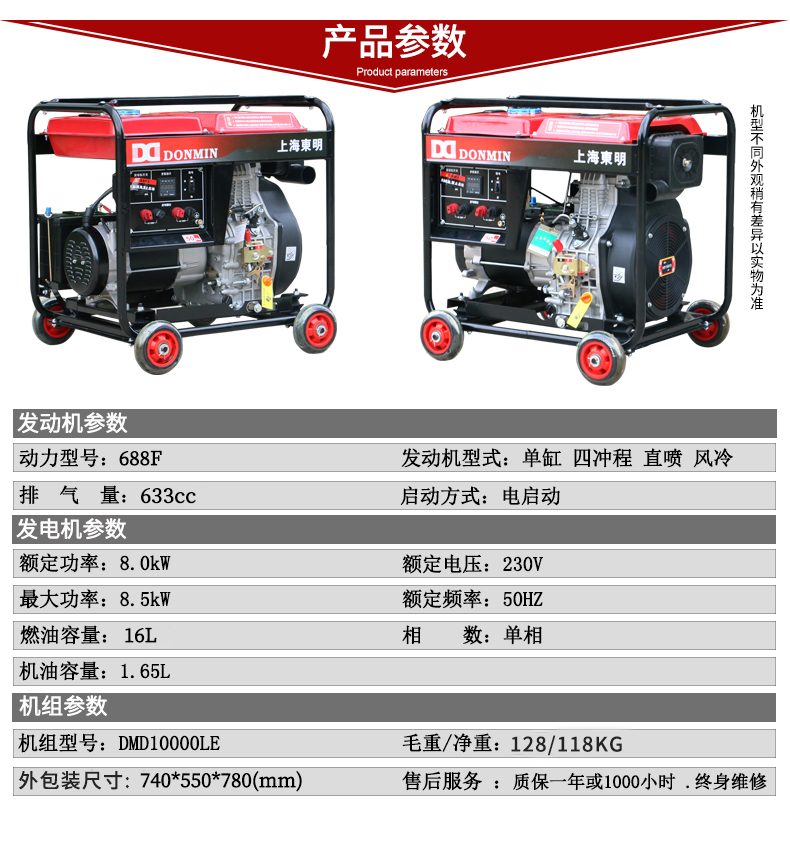 上海東明8KW 8000W小型柴油發電機組DMD10000LE