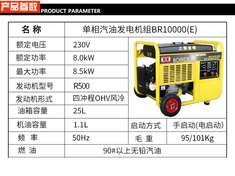 單缸汽油發(fā)電機(jī)組BR10000(E)