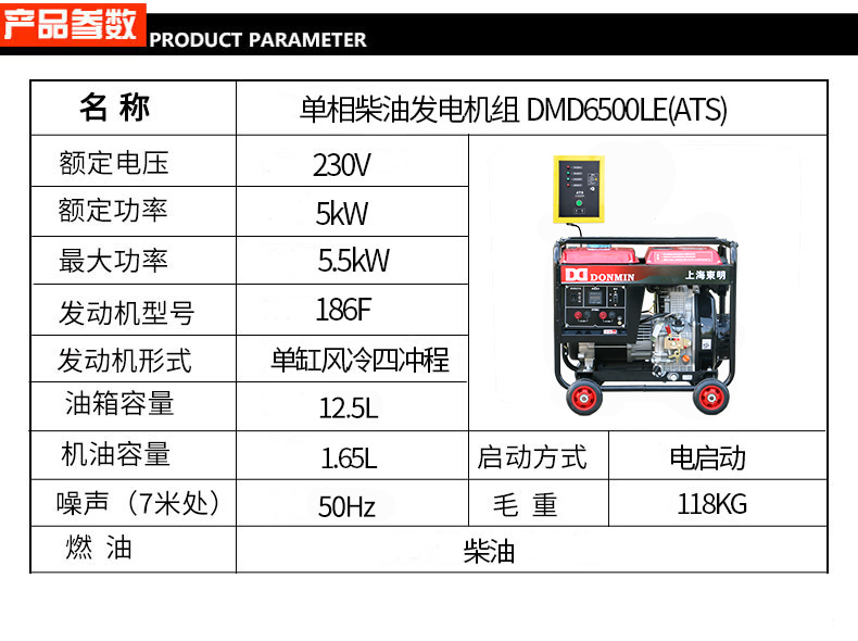 * 表示必填采購:冷鏈配套單相5kw無人值守ATS柴油發(fā)電機 DMD6500LE(ATS)