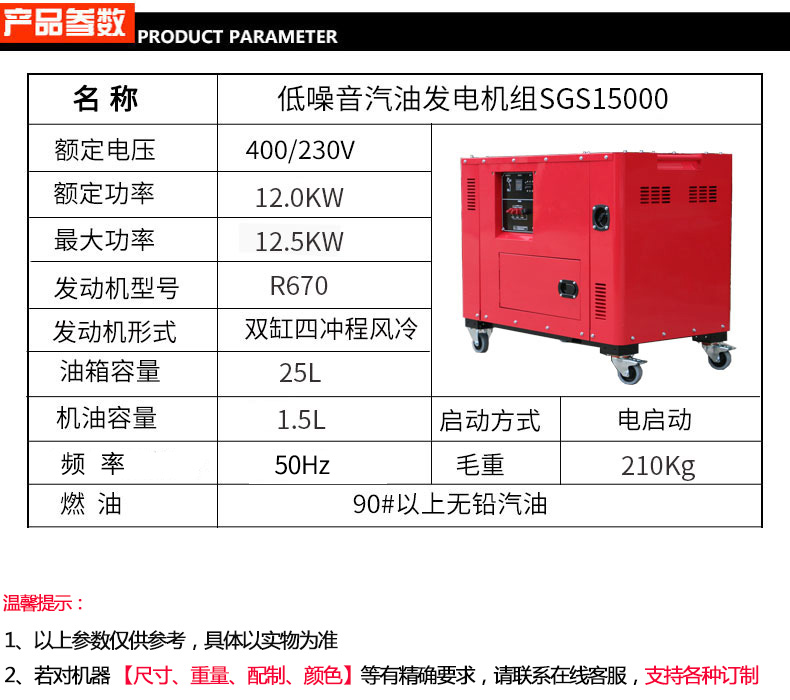 * 表示必填采購:三相12kW低噪音通信基站維護用汽油發電油機 SGS15000
