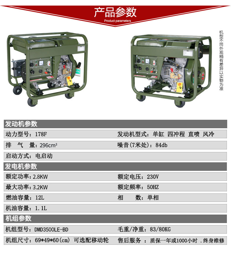 * 表示必填采購:野外訓(xùn)練配套小型3kw柴油發(fā)電機(jī)組 DMD3500LE-BD